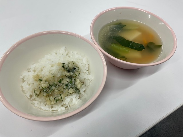 予め作っておいた「おから味噌」を使った味噌汁と「ひと晩発酵味噌」をのせたご飯で味見もしていただきました。